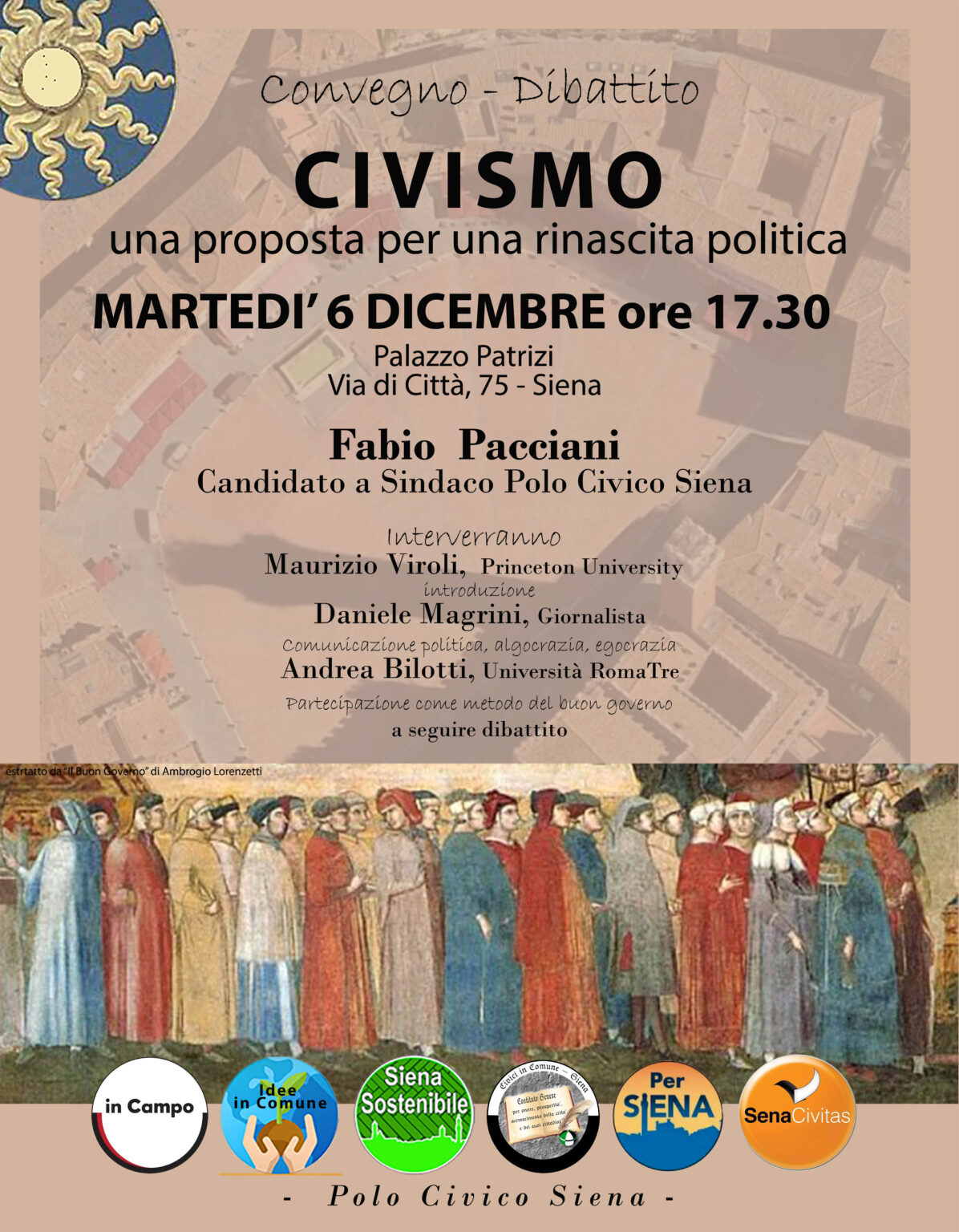 Con il convegno di Sabato 21 Maggio, nell’auditorium dell’Accademia dei Fisiocritci, a partire dalle ore 9:45, proveremo a far chiarezza su argomenti che ci stanno particolarmente a cuore. Approfondiremo i temi del “Civismo”, dalle sue radici locali ai percorsi fin qui tracciati, con uno sguardo alle prospettive future. Per chi da anni, come noi, siContinua a leggere “Invito alla cittadinanza”